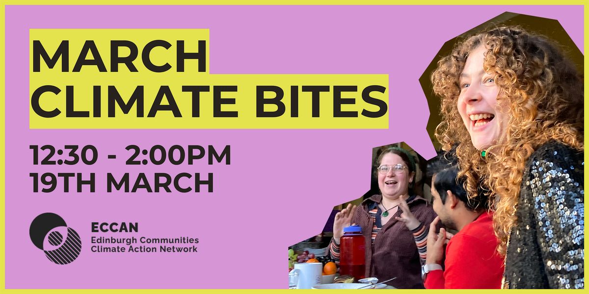 Join us for our March Climate Bites, hosted by at for a relaxed lunchtime gathering bringing people together to connect, share ideas and talk about community climate action in Edinburgh.