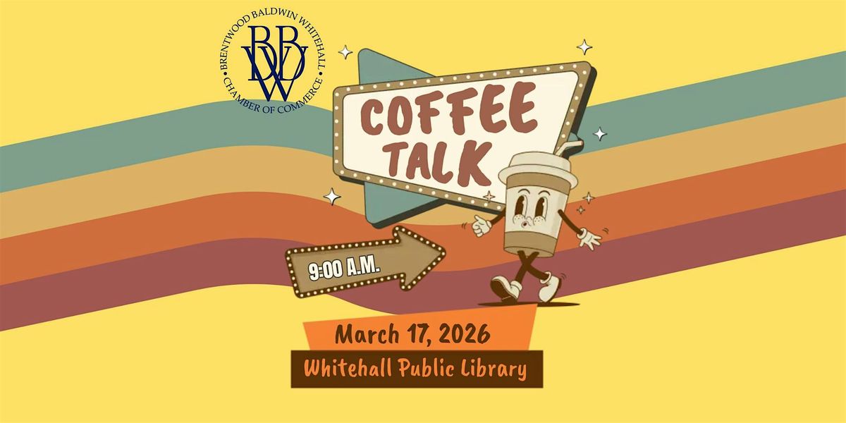 Join the Brentwood Baldwin Whitehall Chamber of Commerce on Tuesday, March 17 at 9:00 a.m. for our monthly Coffee Talk at the Whitehall Public Library!