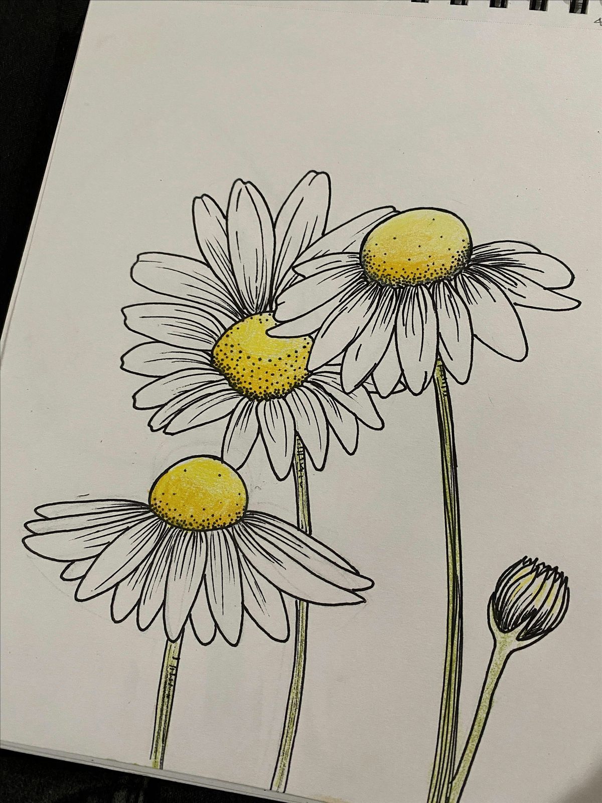 Join us for a relaxing, step-by-step drawing workshop focused on daisies inspired by nature. Students will learn how to sketch and refine floral forms using pencils and ink, exploring a simple mixed-media technique in an easy, guided format. This class is designed to help artists slow down, observe nature, and build confidence while drawing. Perfect for beginners and young artists who want to try something new, discover their inner artist, and enjoy a calm, creative experience. All materials are provided, and the class takes place at The Outlets with studio395 space H185 . We will be listening to records spinning and if time allows, use other media forms such as paints , colored pencils, or markers depending on class participation.