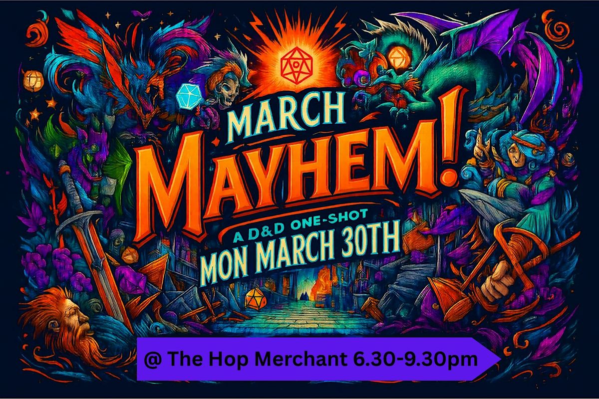 Get ready for some March Madness! You're invited to join DM Horizons for an epic D&D One-Shot at the The Hop Merchant. this Mon March 30th from 6.30 PM.
