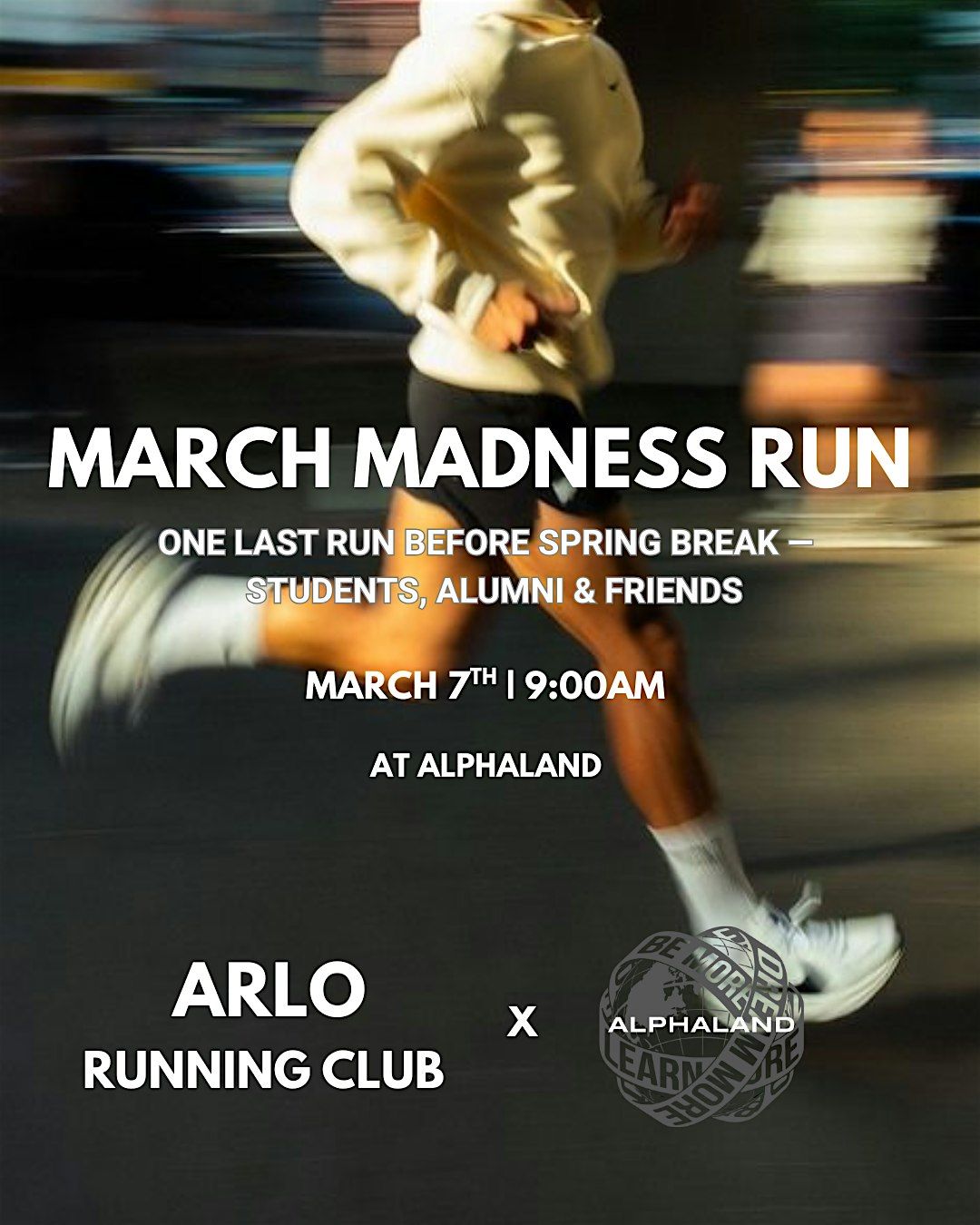 Step up your March Madness Run game with Arlo Running Club at AlphaLand on Saturday, March 7th at 9 a.m. 🏃♂️💨 College squads, alumni, and friends from across Houston are coming together for a morning full of energy, competition, and good vibes.