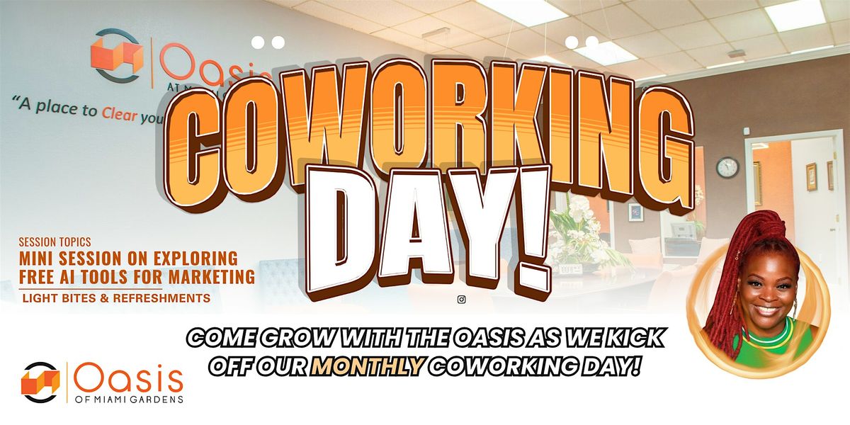 Join us for Oasis at Miami Gardens Monthly Coworking Day, a focused, welcoming environment designed for entrepreneurs, professionals, creatives and small business owners who want to get things done while building meaningful connections.