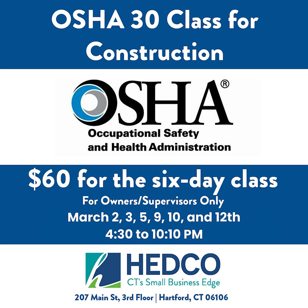 Join HEDCO, Inc. for a six-day OSHA-30 Hour Construction Training Class!