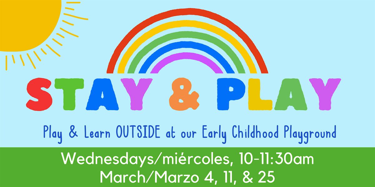 Stay & Play is an ongoing event series, with outdoor playtime scheduled on Wednesdays (weather permitting). Registration for each month’s events opens on the 15th of the month before. To get notified when new events are added, click the blue “Follow” button above.