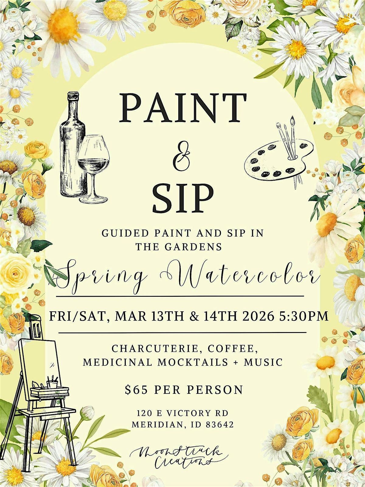 Watercolor Workshops and Paint and Sip events are perfect for family outings, getting together with friends, or a fun way to mix up date night! Moonstruck Creations events can be found all around the Treasure Valley in Boise, Meridian, Garden City, Nampa, Caldwell, Kuna, Eagle, Star, Middleton, Emmet, Avimor, Donnelley, and McCall. Moonstruck Creations events are a safe place to be creative and embrace our own unique expression.