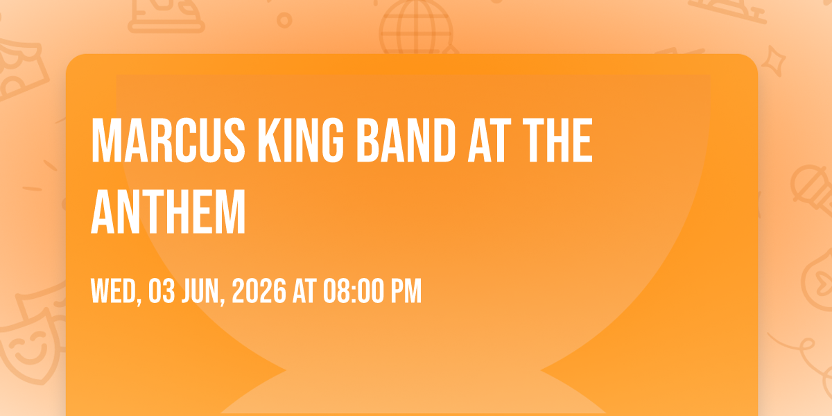 ✨ Discover the extraordinary at Marcus King Band at The Anthem, where magic meets reality in ways you've never imagined! 🏛️ Set in The Anthem nestled in bustling Washington, DC, this event promises to be a landmark occasion. 📅 Taking place on June 3rd, 2026 at 08:00 PM, it's going to create an atmosphere where every moment becomes a cherished memory. 🌟 Immerse yourself in an experience crafted with attention to every detail, designed to surprise and delight at every turn. They have worked tirelessly to ensure this event exceeds all expectations, bringing together elements of entertainment, innovation, and pure joy. 🎊 Don't miss your chance to be part of this remarkable journey!