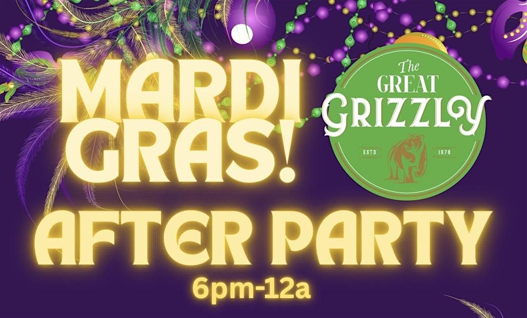 Slide into the MARDI AFTER-PARTI at Great Grizzly Bear from 6PM–12AM and keep the good times rolling.