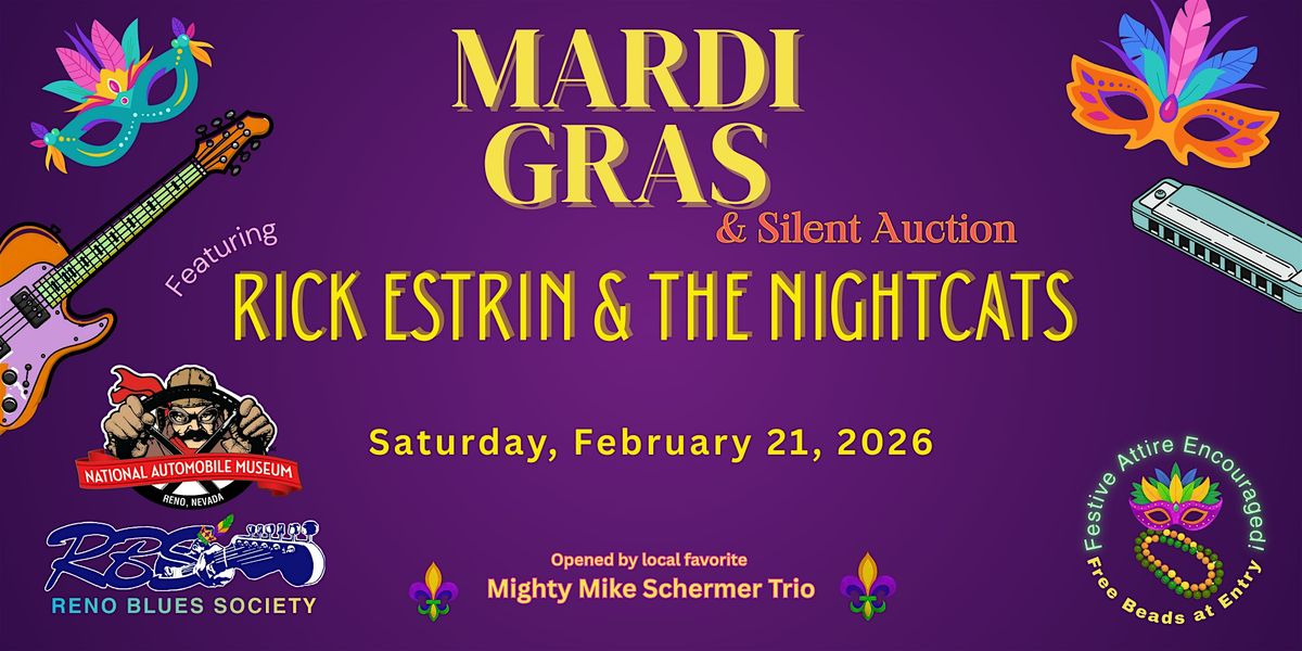 Join us for "Mardi Gras" – a special event brought to you by the Reno Blues Society and the National Automobile Museum. Enjoy an evening of irresistible dance grooves,soulful tunes and incredible classic cars, starting with an opening performance by Mighty Mike Schermer Trio, followed by the main feature, Rick Estrin & The Nightcats.