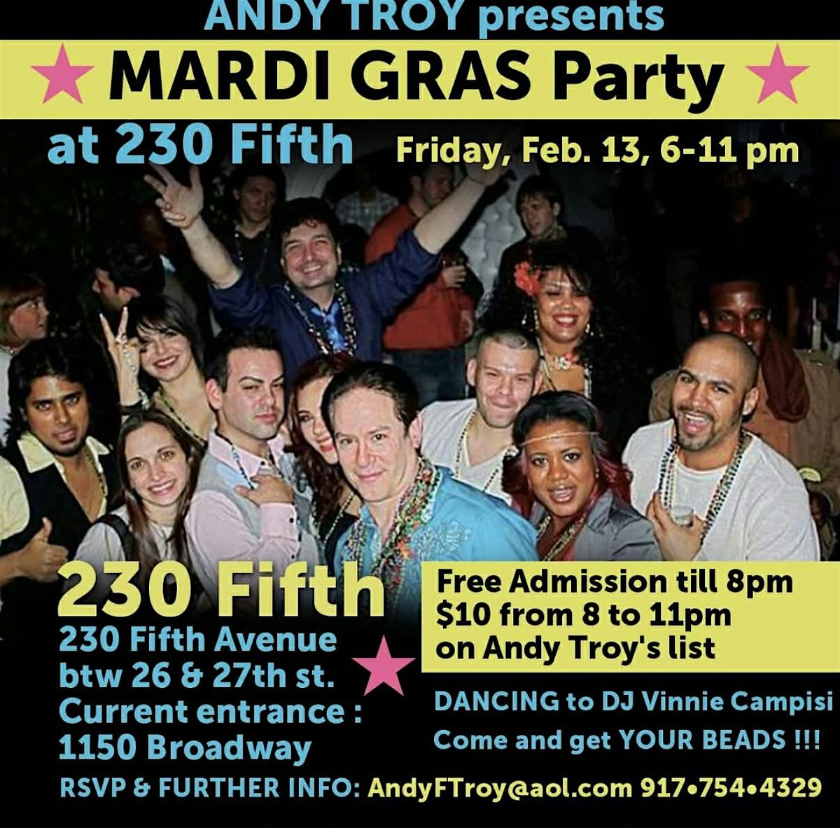 Say You're There for Andy Troy's party and admission is FREE til 8 PM, $10 from 8-11 PM. The general public pays $20 so mention Andy Troy & party like a VIP!