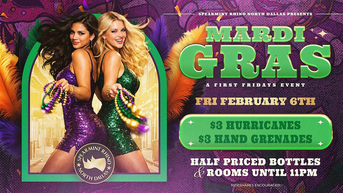 Laissez les bons temps rouler — Mardi Gras meets First Fridays at Spearmint Rhino North Dallas.