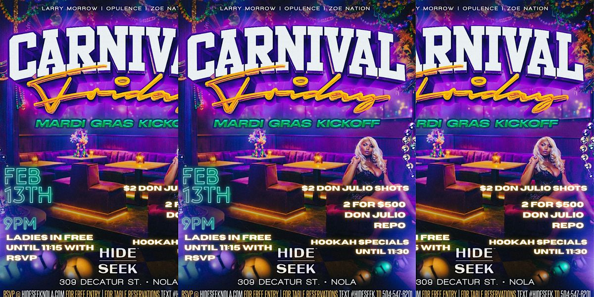 Join us for Carnival Fridays: Mardi Gras Kickoff at Hide|Seek. It’s officially Mardi Gras season and we’re kicking it off the right way.About this Event