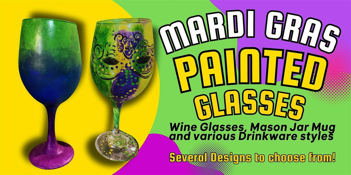Join us at Create Studios for a festive Mardi Gras Painted Glassware Workshop! Get into the spirit of the season as you design and paint your own set of glassware with vibrant purple, green, and gold hues, inspired by the magic of Carnival. Choose ffrom our drinkware selection or bring your own, either way, you'll leave with personalized pieces perfect for your next Mardi Gras celebration.