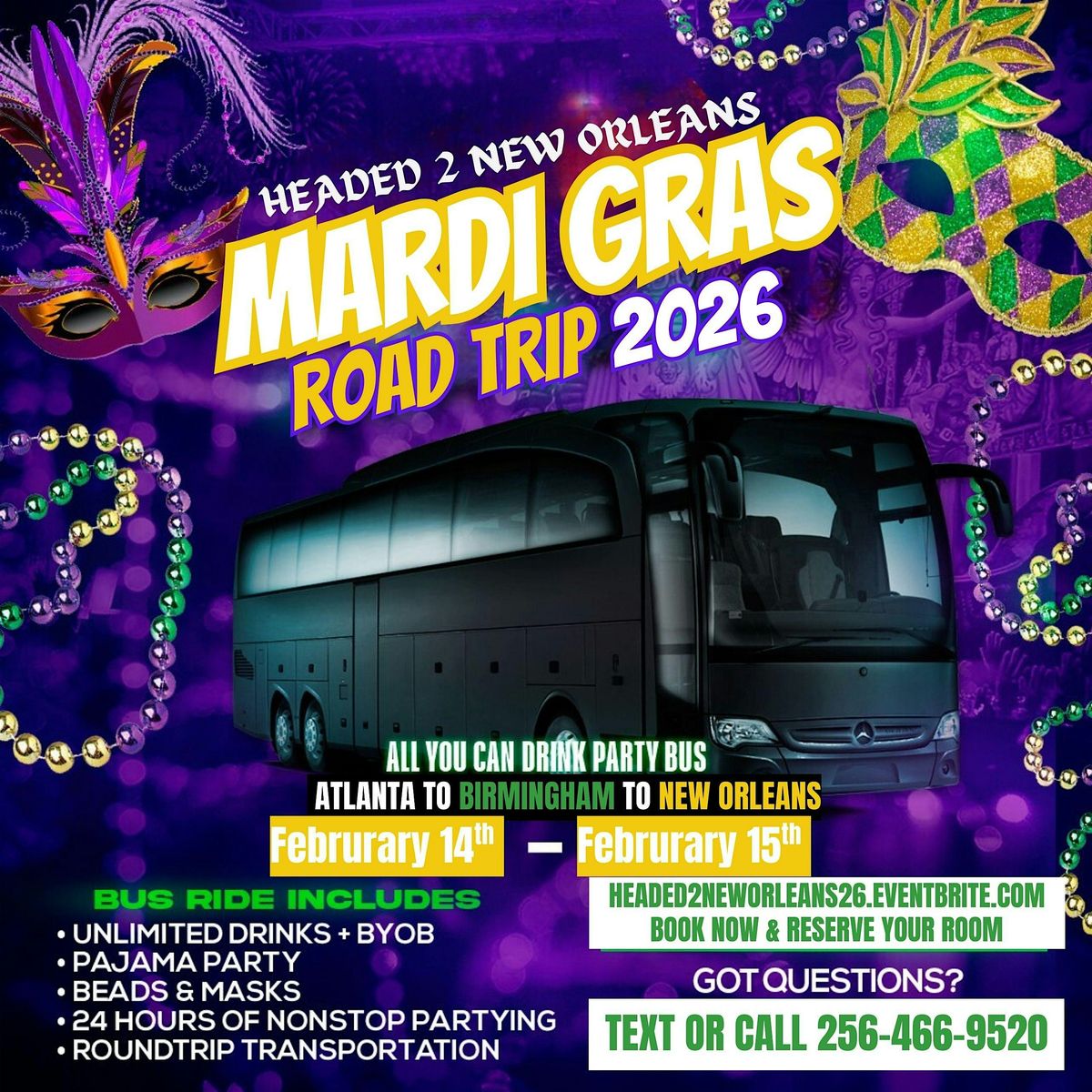 - All you can drink party bus Round Trip from Atlanta to Birmingham to New Orleans