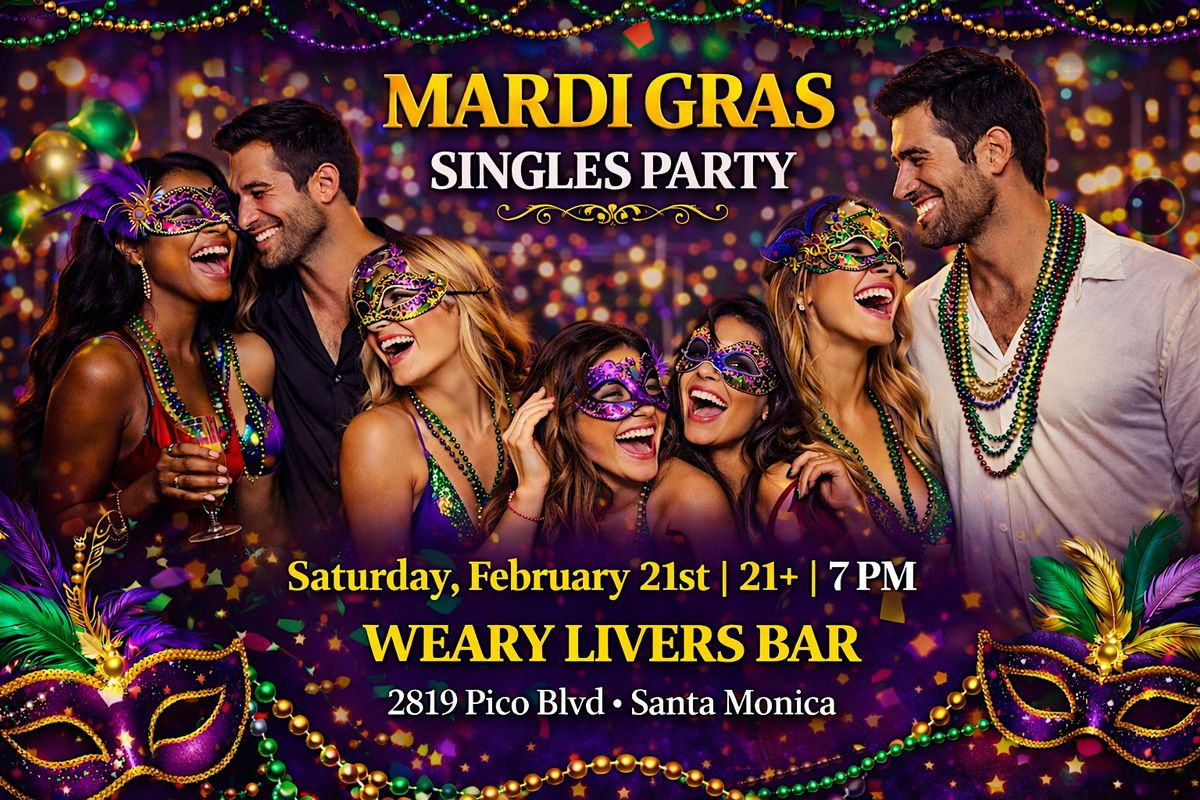 This Saturday, February 21st, 2026, step into the spirit of New Orleans at the Mardi Gras Singles Party at Weary Livers Bar in Santa Monica. Think beads, bold energy, and a night made for spontaneous connections.