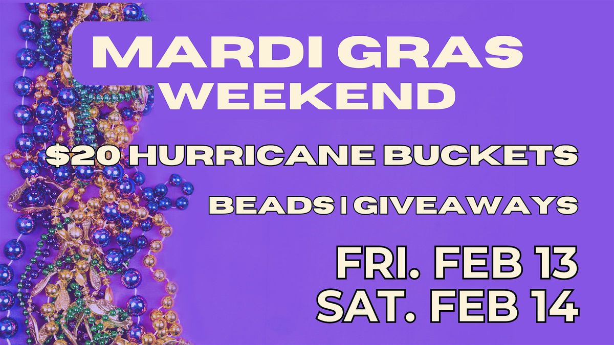 We’re serving up $20 Hurricane Buckets, beads and giveaways, plus themed nights on both Friday and Saturday — each with its own specials and soundtrack. Whether you’re kicking things off on Friday or going all-in for Saturday night, Mardi Gras weekend at Tally Ho is all about good drinks, great music, and zero regrets.