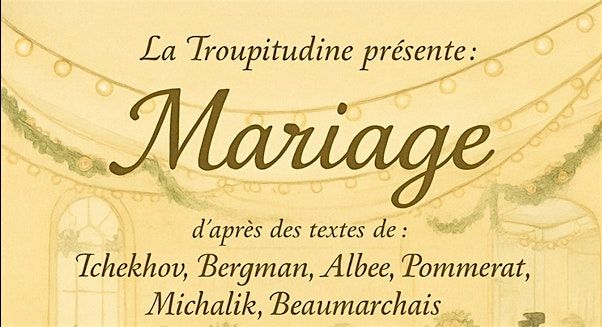 La Troupitudine présente Mariage, d'après les textes de Tchekov, Bergman, Albee, Pommerat, Michalik, Beaumarchais, etc.About this Event