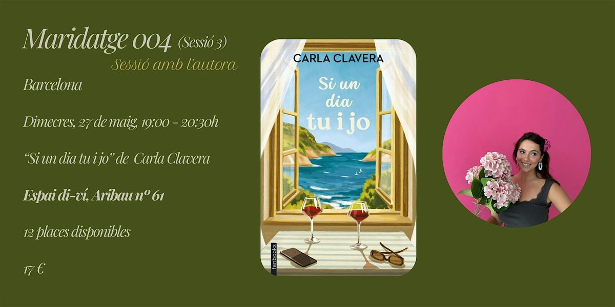 Durant el mes de maig us portem unes sessions del Maridatge de Llibres 004 molt especials, ja que maridarem el llibre "Si un dia tu i jo" de la Carla Clavera. Seran unes sessions diferents, ja que comptem amb la presència de l'autora!