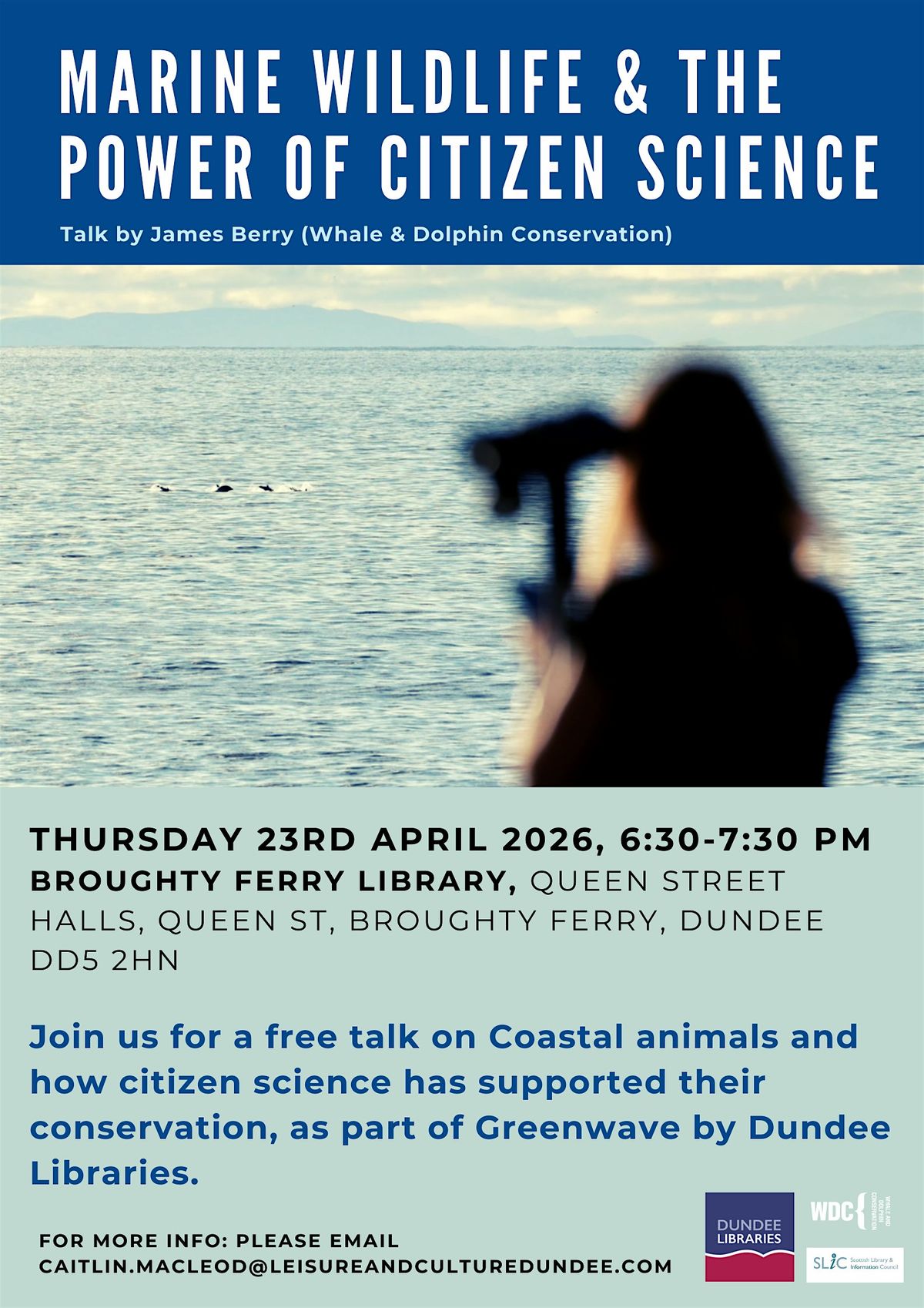 Join us for a free talk on Coastal animals and how citizen scientists has supported their conservation, as part of Greenwave by Dundee Libraries.