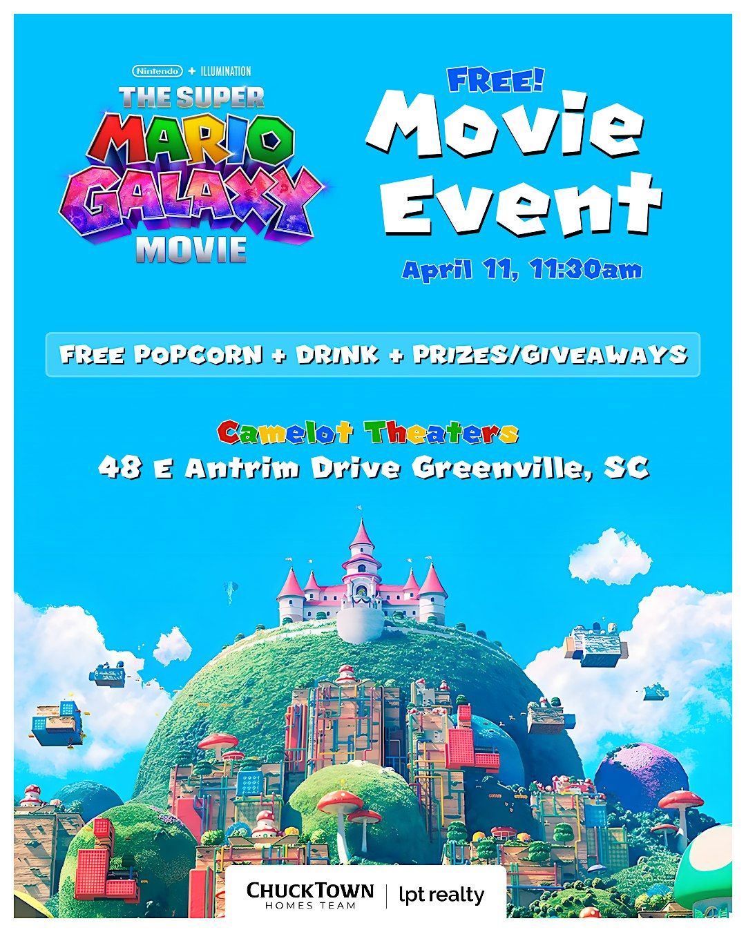 Come with your family to enjoy the Super Mario Bros Galaxy movie on ChuckTown Homes!