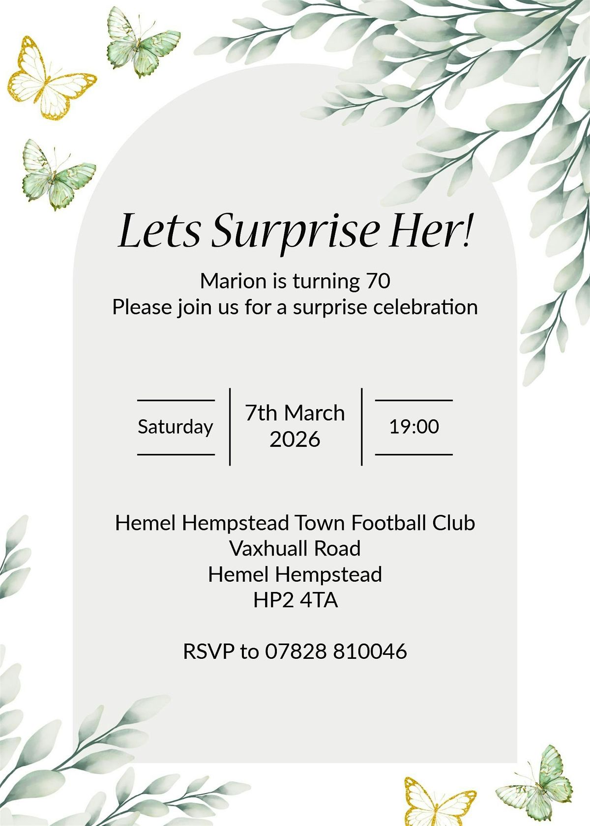 Join us to celebrate Marion turning 70 but Shhh... it;s a surprise!About this Event