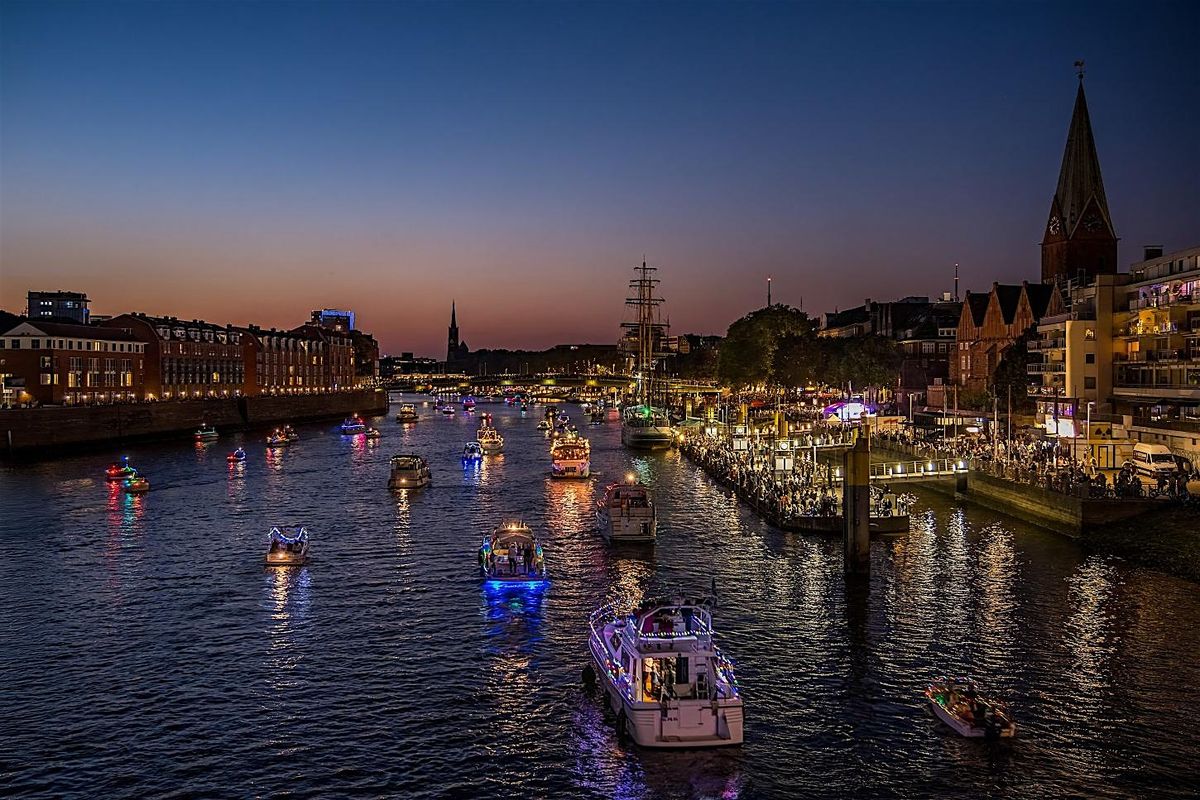 Höhepunkt der Maritimen Woche: eine Lichterfahrt kleiner Schiffe, Feuerwerk, Live-Musik, Mitmach-Aktionen, Genüssen und einem Flohmarkt.