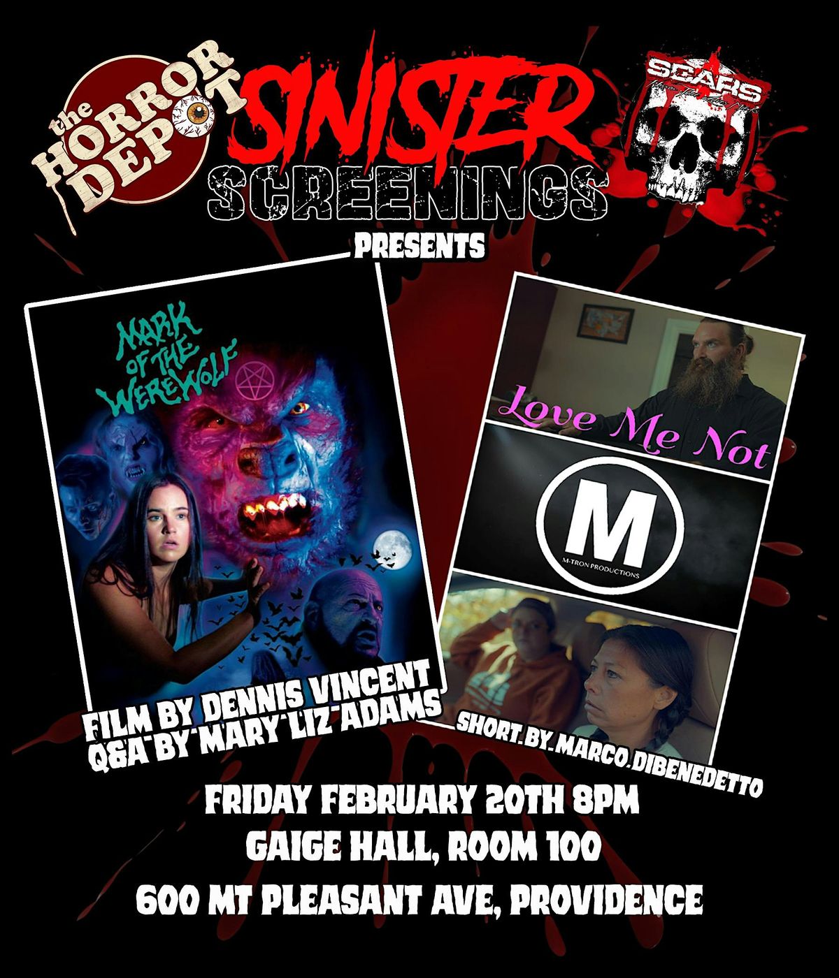 Scars Magazine and Horror Depot are teaming up with the Rhode Island College's Film Studies Program to present a Sinister Screening of The underground sensation Mark Of The Werewolf! There will be a meet and greet, exclusive swag, and a q&A with star Mary Liz Adams!