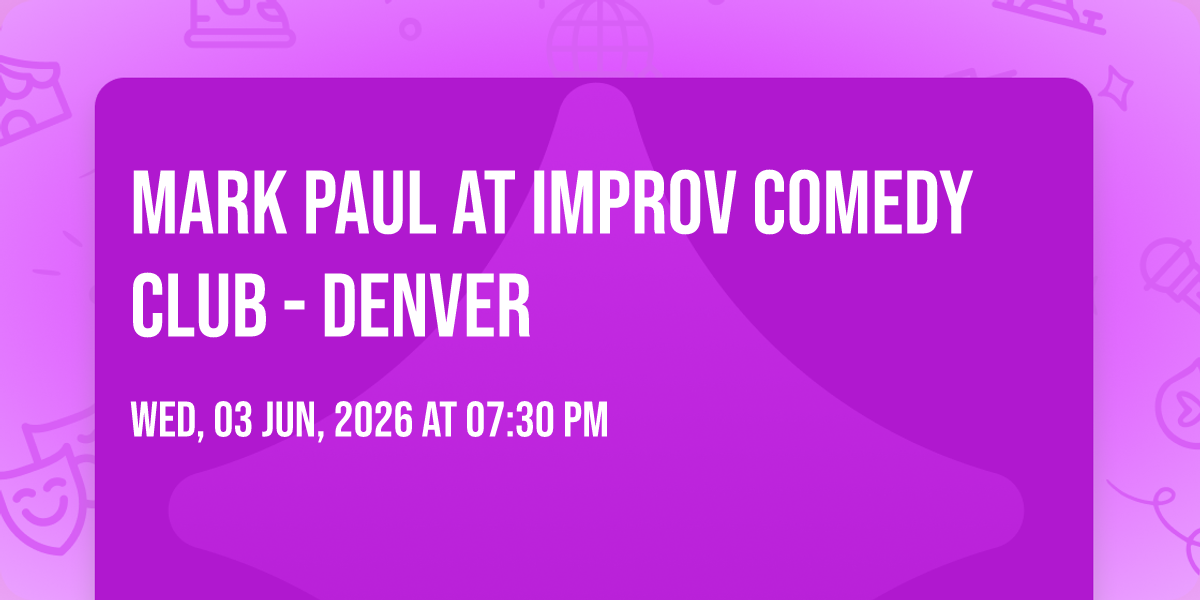 🎉 Welcome to Mark Paul at Improv Comedy Club - Denver, where the impossible becomes possible and dreams take flight! 🏛️ Join us at Improv Comedy Club - Denver in the heart of Denver, CO for an event that will redefine your expectations. 📅 On June 3rd, 2026 at 07:30 PM, witness the transformation of space and time into something truly magical. ✨ It's a curated experience combining the best of innovation, entertainment, and community spirit, creating moments that will be remembered for years to come. Whether you're a first-time visitor or a seasoned enthusiast, prepare to be amazed. 🎊 Book now to ensure your place in this unforgettable experience!