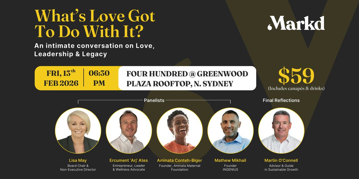 Join the Markd Global team for an intimate evening of honest stories, shared conversation, and the occasional love-song moment. We’ll explore Love, Leadership, and Legacy as they show up in real life — not as ideas, but as forces that shape how we make decisions and the impact we choose to make next.