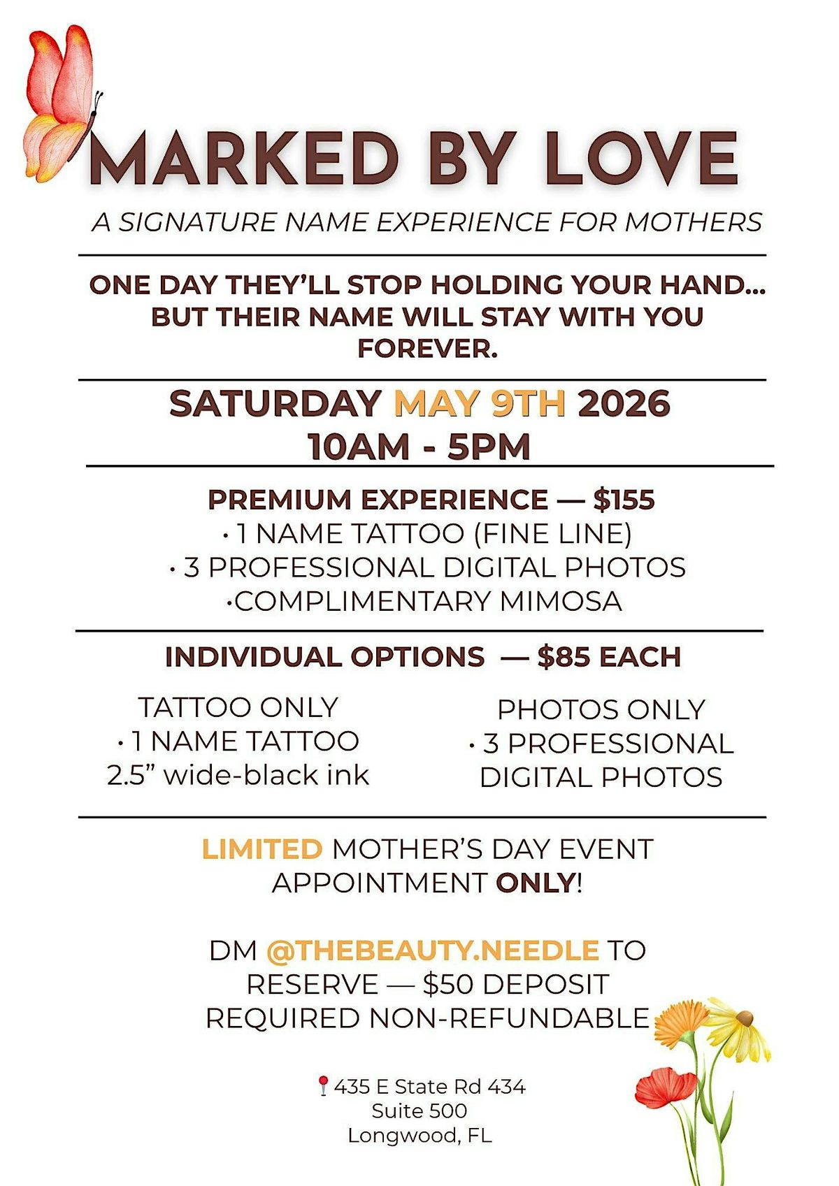 Join us for Marked by Love at The Beauty Needle Studio, an intimate Mother’s Day experience designed to celebrate the bond between a mother and her children in the most meaningful way.