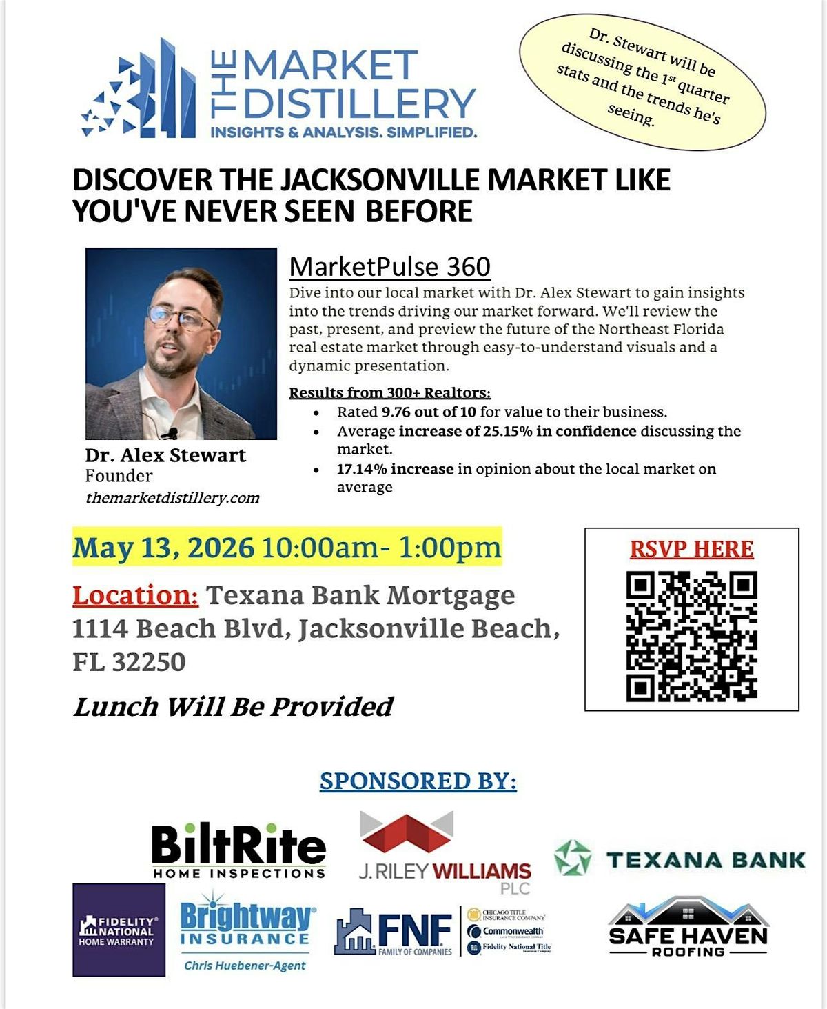 REALTORS: Come join us for an exciting Market Update event with the renowned Dr. Alex Stewart! Get ready to gain valuable insights into the latest market trends and forecasts. This in-person event will be held at Texana Bank Mortgage, so mark your calendars and don't miss out on this opportunity to expand your knowledge and network with like-minded individuals. See you there!