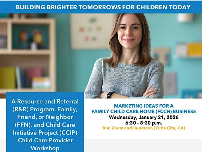 - Attend in-person. (RSVP through this Eventbrite Marketing Ideas for a Family Child Care Home (FCCH) Business (In-Person) Tickets, Wed, Jan 21, 2026 at 6:30 PM | Eventbrite)
