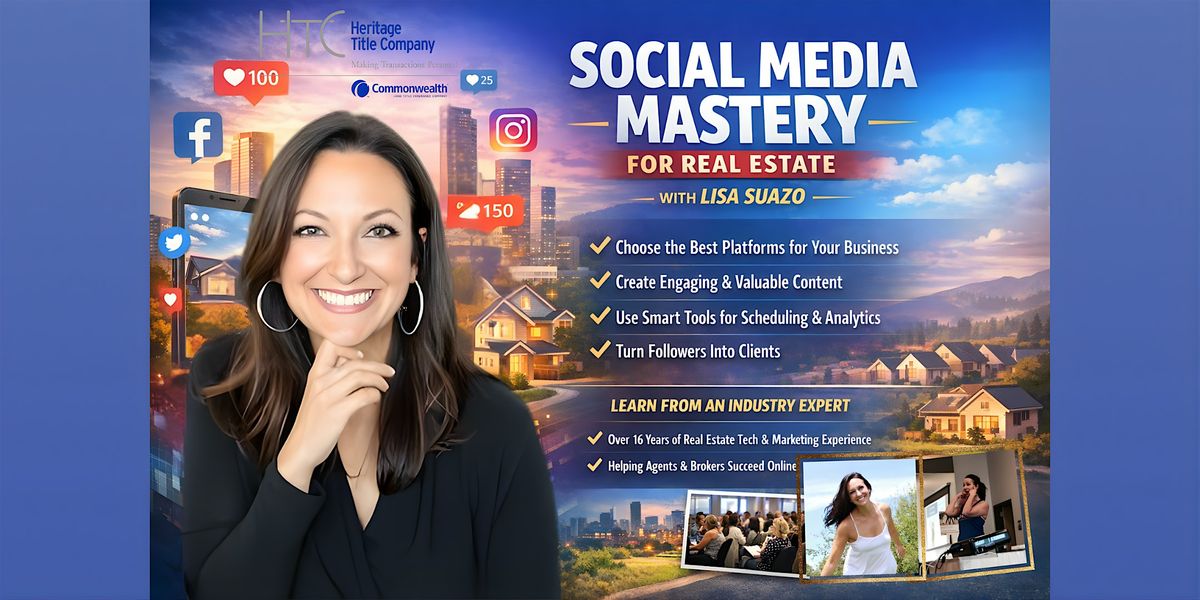 In today's digital world, social media is one of the most powerful tools a real estate professional can use to grow their brand, connect with clients, and close more deals. Join industry expert Lisa Suazo for an in-depth, high-energy session designed to elevate your marketing game.