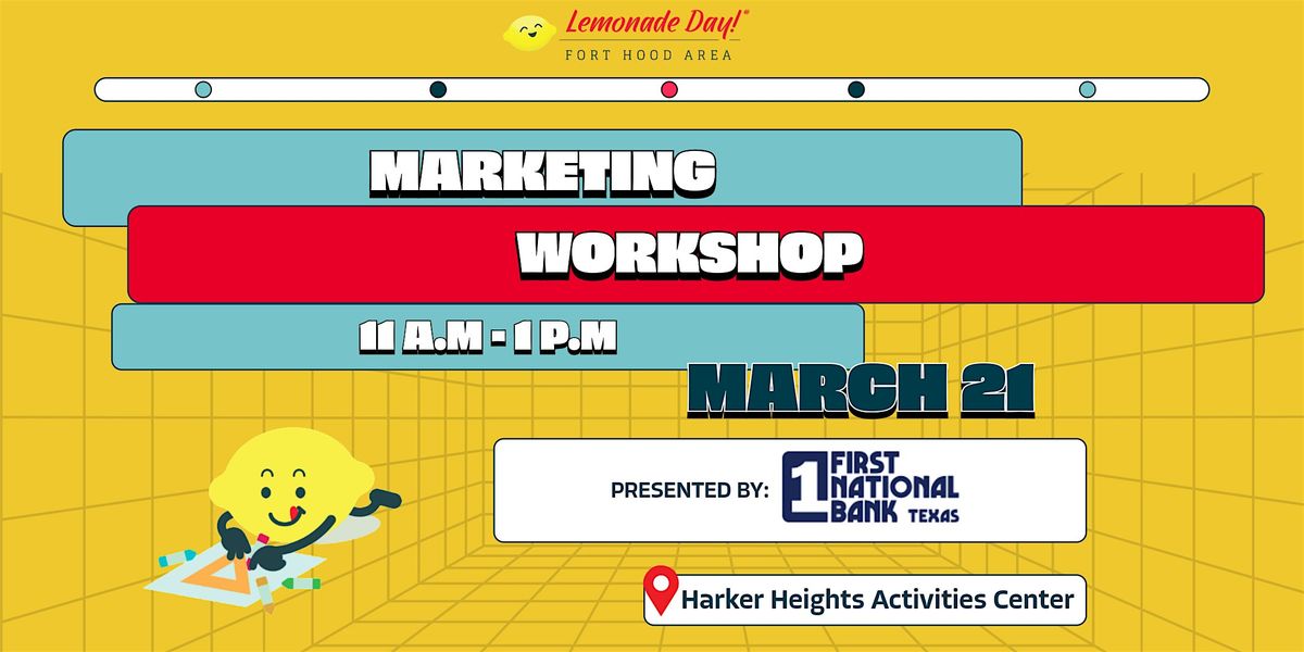 Lemonade Day participants will learn from the First National Bank Texas Marketing team how to create their lemonade stand marketing plan, choose their theme, and create their very own digital logo!