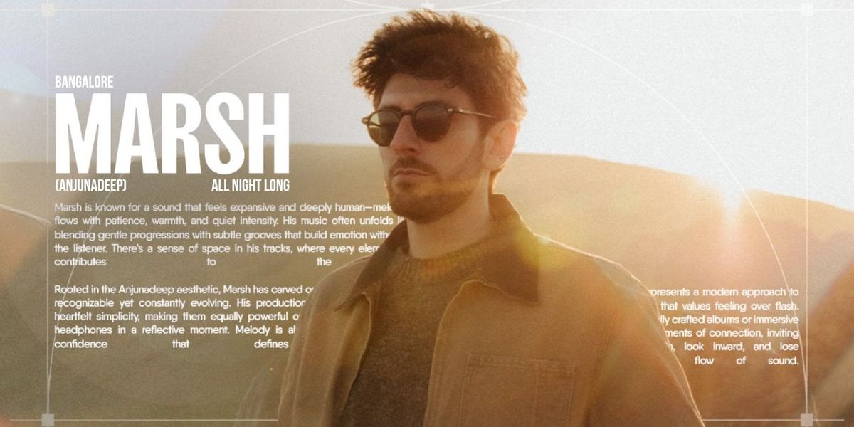 From Anjunadeep’s inner circle to the world’s most iconic dancefloors, Marsh brings his unmistakably warm, emotional sound to Bangalore on 29th March 2026.