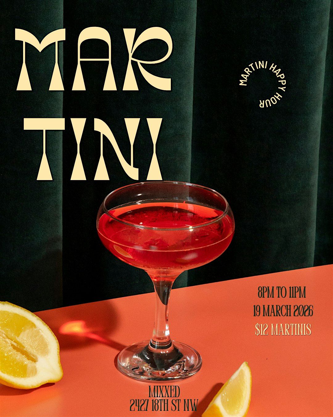 Martini Happy Hour at MIXXED — where the vibes are smooth and the martinis are smoother.