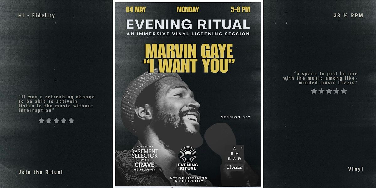On Monday May 4, 2026 The Evening Ritual presents : MARVIN GAYE "I WANT YOU" at Ash-Bar at the Ulysses Hotel in Mount Vernon.