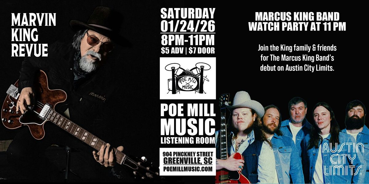 Join Marvin King with Friends and Family after the show for a 11:00pm Watch Party of Marcus King Band’s debut on Austin City Limits.