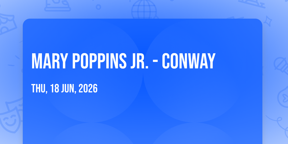 📍 Location: 33.8361, -79.0469✨ Enter a world of endless possibilities at Mary Poppins Jr. - Conway, where every moment tells a story! 🏛️ The stunning Theatre of the Republic in vibrant Conway, SC transforms into a realm of wonder on June 21st, 2026 at 08:00 PM. 🌟 They have crafted an experience that goes beyond the ordinary, combining elements of surprise, delight, and pure entertainment. Every detail has been thoughtfully considered to ensure your journey with us is nothing short of extraordinary. 🎯 Join fellow adventure seekers and memory makers in this celebration of imagination and innovation. 🎊 Reserve your spot today and be part of something truly special!