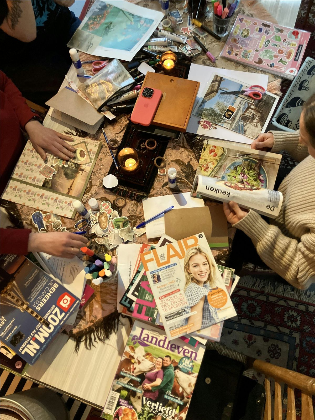 Do you have any special photo, image, stickers or pens you would love to use in your creation? Bring it! We will provide as well materials