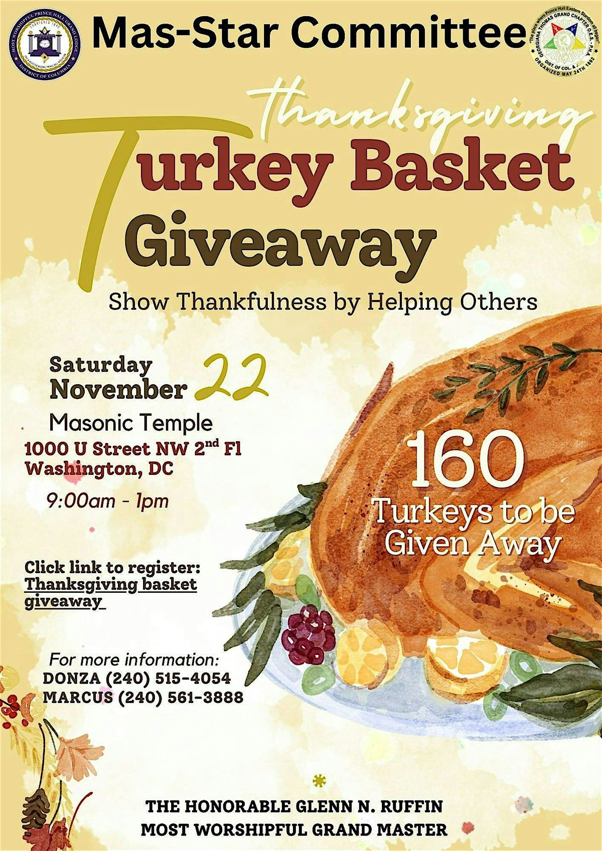 Show thankfulness by helping others. We are giving away 160 Thanksgiving Turkey Baskets to the residents of the DMV.