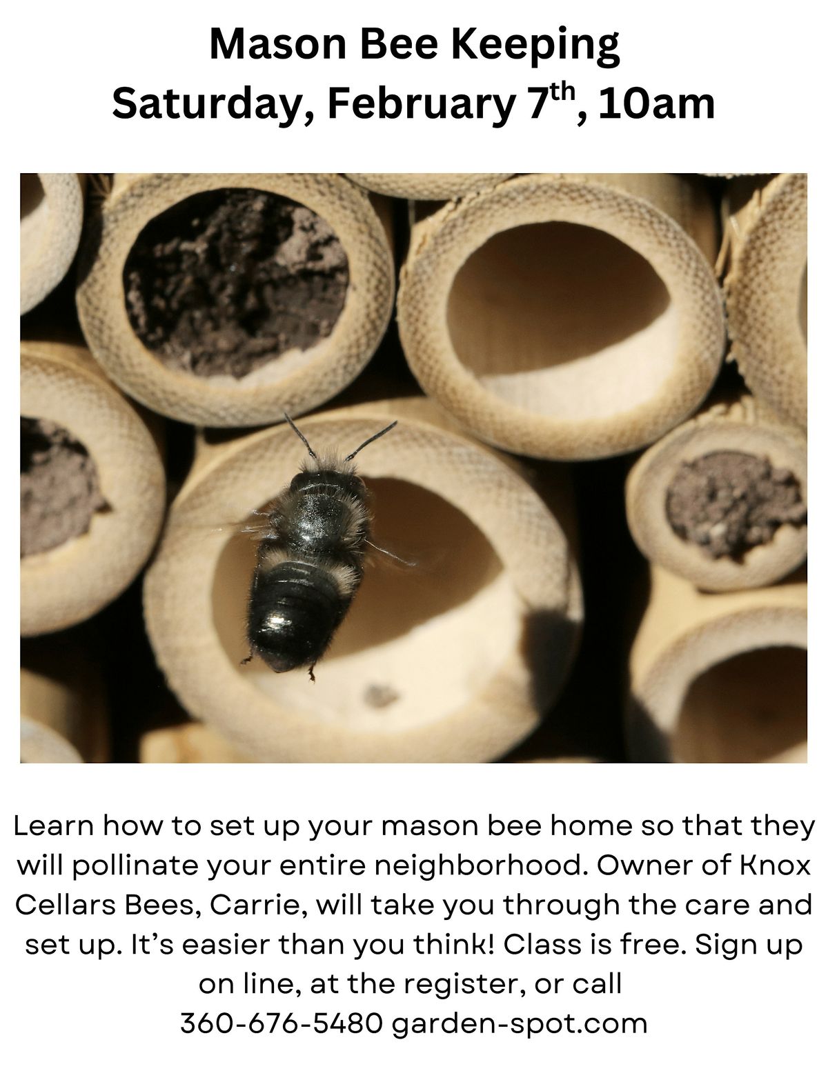 Learn how to set up your mason bee home so that they will pollinate your entire neighborhood. Owner of Knox Cellars Bees, Carrie, will take you through the care and set up. It's easier than you think! Class is free.