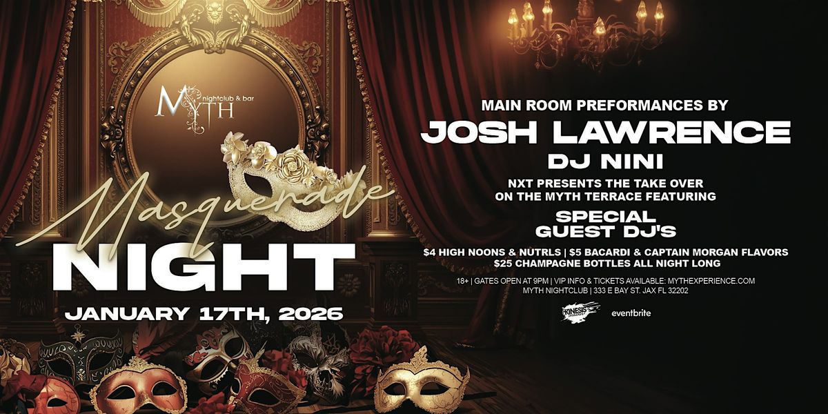 Step into a night of mystery, elegance, and elevated nightlife as Myth Nightclub presents Masquerade Night. Dress to impress, grab a mask, and experience an immersive nightlife experience across multiple rooms with top-tier talent and exclusive drink specials.