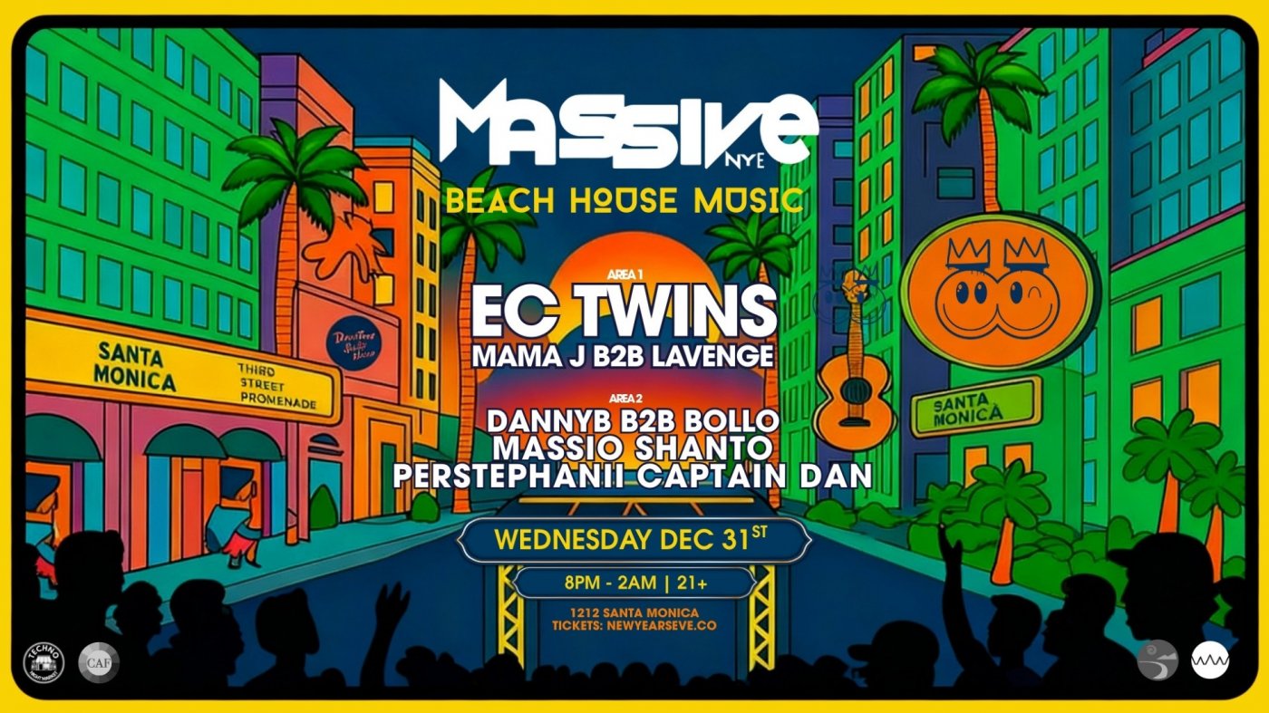 Ring in 2026 at MASSIVE NYE, a New Year’s Eve Beach House–inspired music event in Santa Monica. Join us for a night of house-driven sounds across multiple areas featuring a diverse lineup of DJs and nonstop music into the new year.