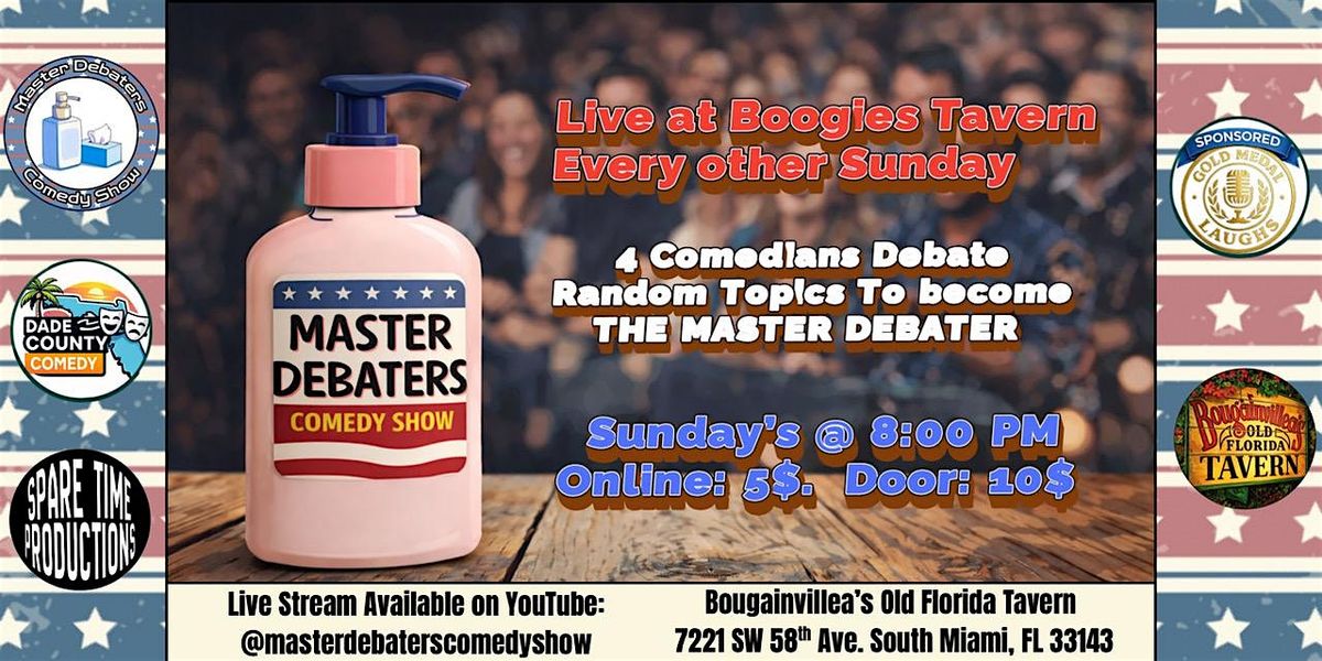 Get ready to laugh your socks off at the Master Debaters Comedy Show! This in-person event brings together top-notch comedians who'll have you cracking up with their witty banter and sharp humor. Don't miss out on an evening full of fun, laughs, and unexpected twists. Grab your friends and join us for a night where comedy meets clever debate. It's gonna be epic!