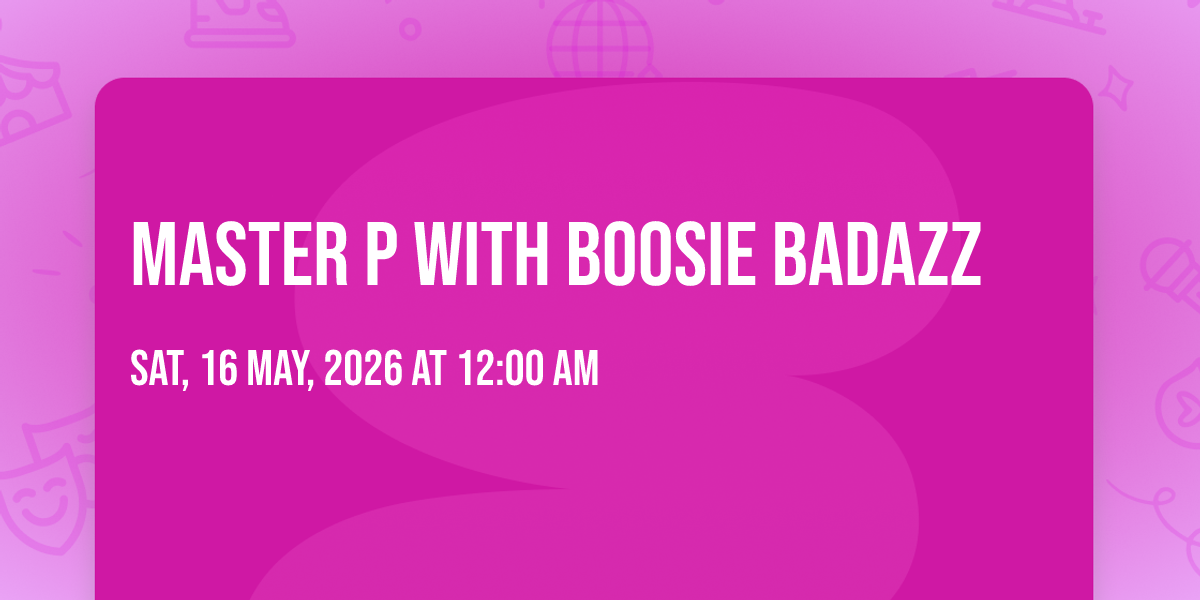 📍 Location: 37.0347, -76.3813🌟 Step into a world of wonder at Master P with Boosie BadAzz, where extraordinary moments await! 🏛️ Located at Hampton Coliseum in dynamic Hampton, VA, this event will become the talk of the town. 📅 Join us on May 16th, 2026 at 12:00 AM for a celebration that defies the ordinary. ✨ This curated experience brings together the best of entertainment, culture, and community spirit. Every detail has been thoughtfully planned to ensure an unforgettable experience for all our guests. 🎯 Take advantage of this opportunity to be part of something special. 🎊 Early registration is recommended as space is limited!