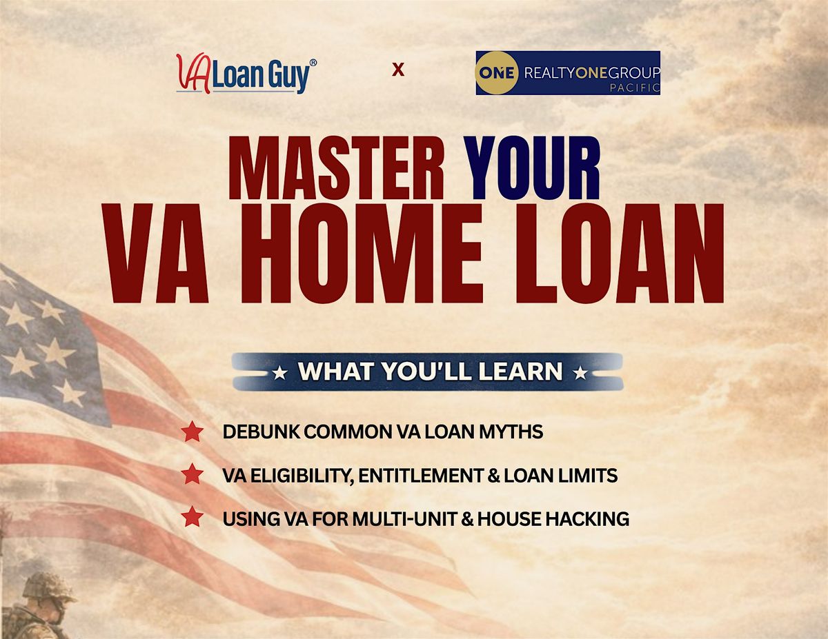 VA Home Loan workshop: eligibility, myths, loan limits & house hacking. Hosted by Army Veteran Caleb Whisman. Refreshments will be provided!