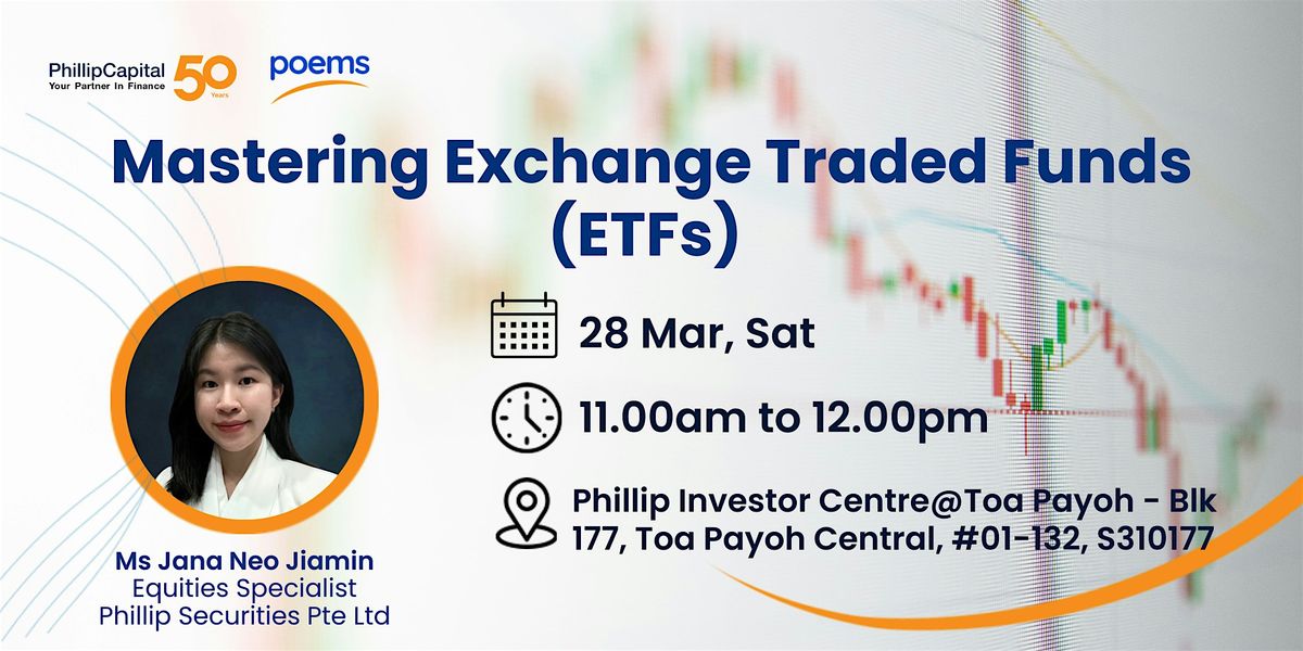 Join us at this seminar on 28 Mar, Sat at 11am where Ms. Jana Neo, Equities Specialist at Phillip Securities, will explain how ETFs work, their benefits, and how to incorporate them into your investment strategy. Gain insights into diversification, liquidity, and cost-effectiveness to help you make well-informed investment decisions!