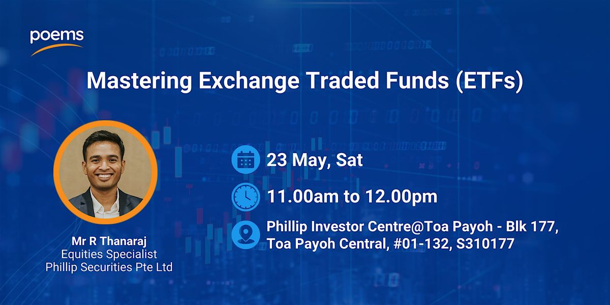 Join us at this seminar on 23 May, Sat at 11am where Mr R Thanaraj, Equities Specialist at Phillip Securities, will explain how ETFs work, their benefits, and how to incorporate them into your investment strategy. Gain insights into diversification, liquidity, and cost-effectiveness to help you make well-informed investment decisions!