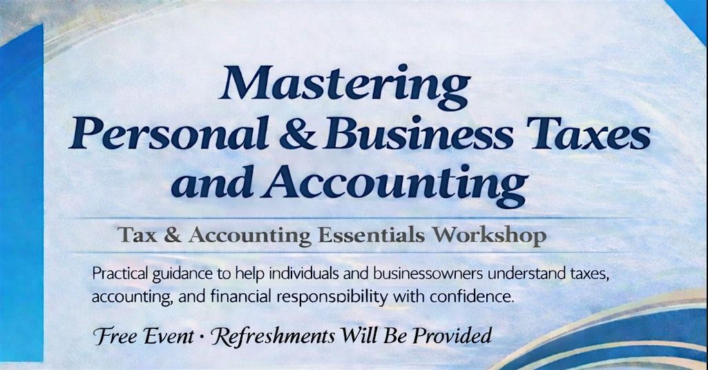Join us in person for a workshop designed to help you better understand personal and business taxes and accounting in a clear, welcoming environment. Whether you are just getting started or need a refresher, this session offers practical guidance to help you manage your finances with confidence.