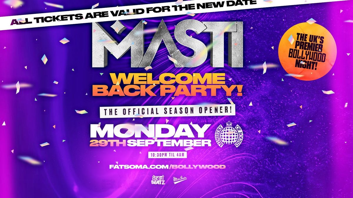 BOLLYWOOD LDN PRESENTS :MASTI : WELCOME BACK PARTY!WEDNESDAY 29th SEPTEMBER 2025